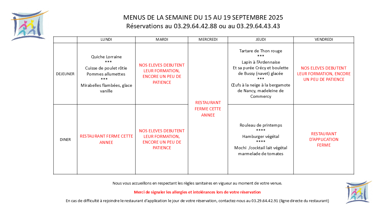 Les tarifs de nos menus ne sont pas soumis à TVA et ces derniers ne supportent aucune charge de personnel. Nous ne pouvons toutefois pratiquer des prix trop bas de manière à ne pas faire de concurrence déloyale aux restaurateurs avec lesquels nous entretenons de très bonnes relations. Ce sont nos partenaires dans le cadre de l’apprentissage ainsi que des périodes de stage pour nos élèves sous statut scolaire.
