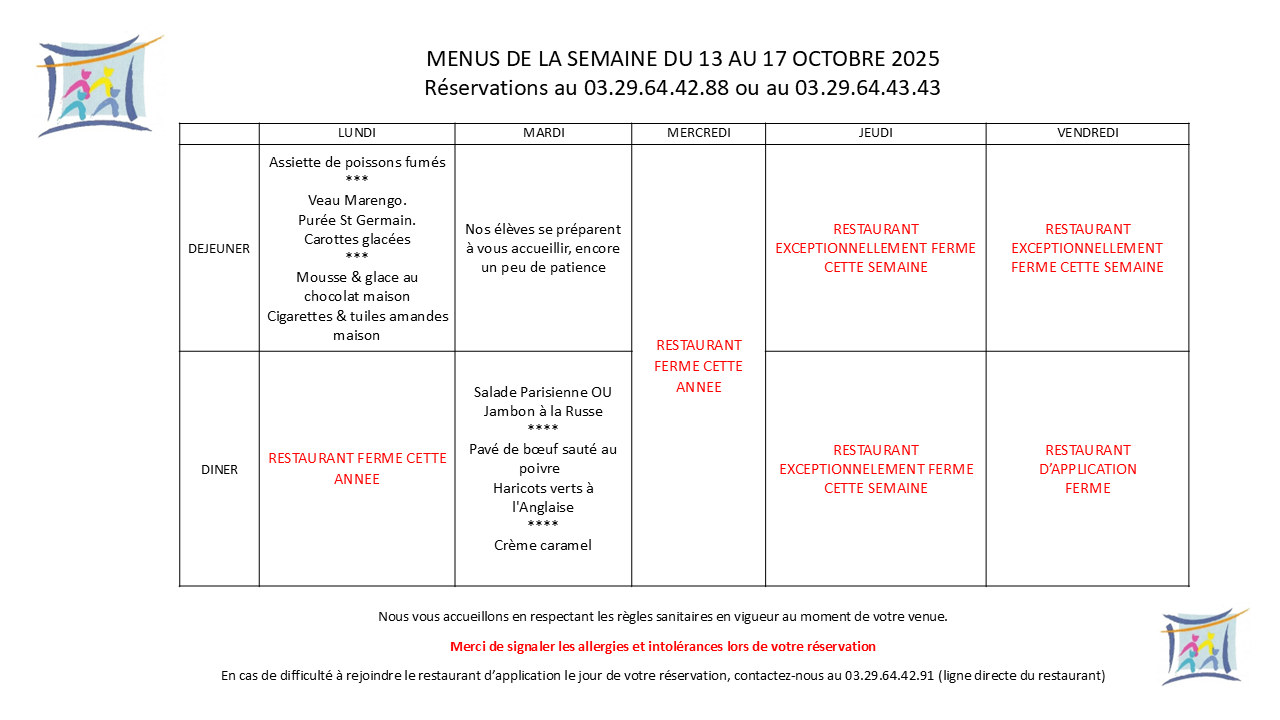 Merci de bien vouloir consulter les menus qui précisent nos jours d’ouverture.